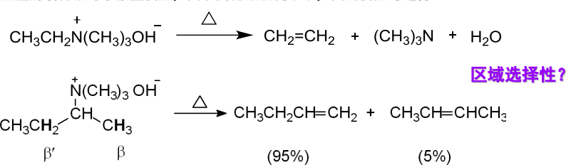下图比较了卤代烃消除和季铵碱消除的区域选择性: