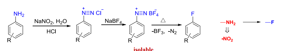 此反应称为为席曼(Schiemann)反应,它是由芳胺制备氟代芳烃的常用方法。