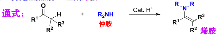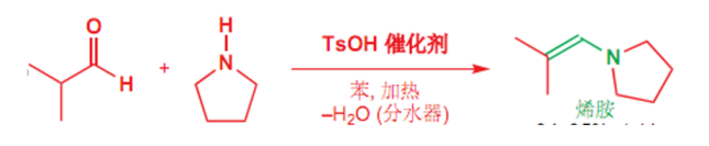 该反应也可逆,烯胺在稀酸条件下水解为醛/酮:
