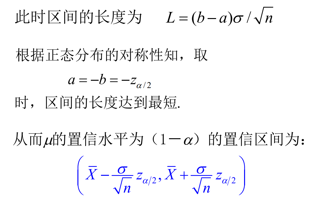 - 置信区间长度: 称置信区间\([\hat{\theta}_1, \hat{\theta}_2]\)的平均长度\(L = E(\hat{\theta}_2 - \hat{\theta}_1)\)为区间的精确度。
